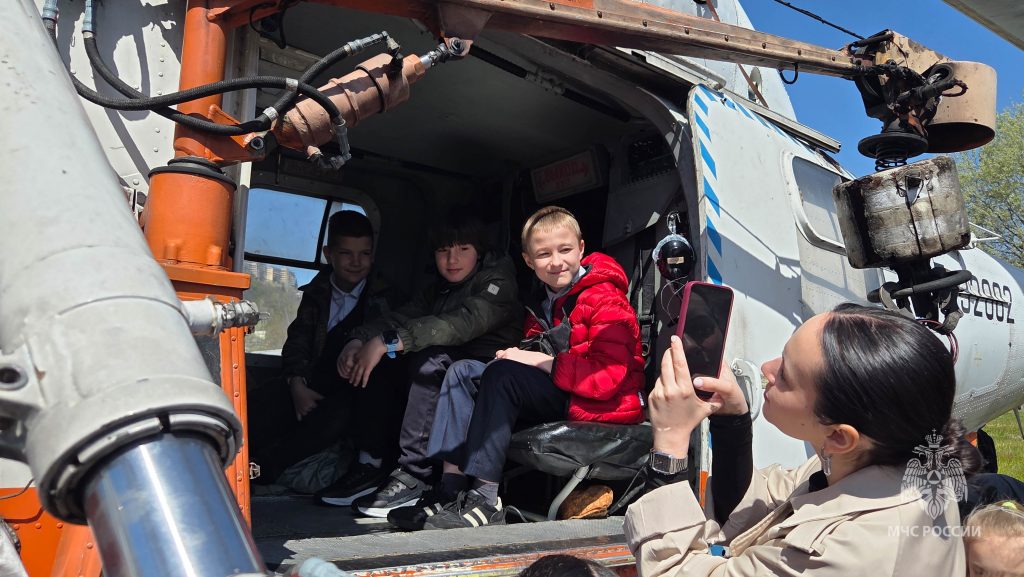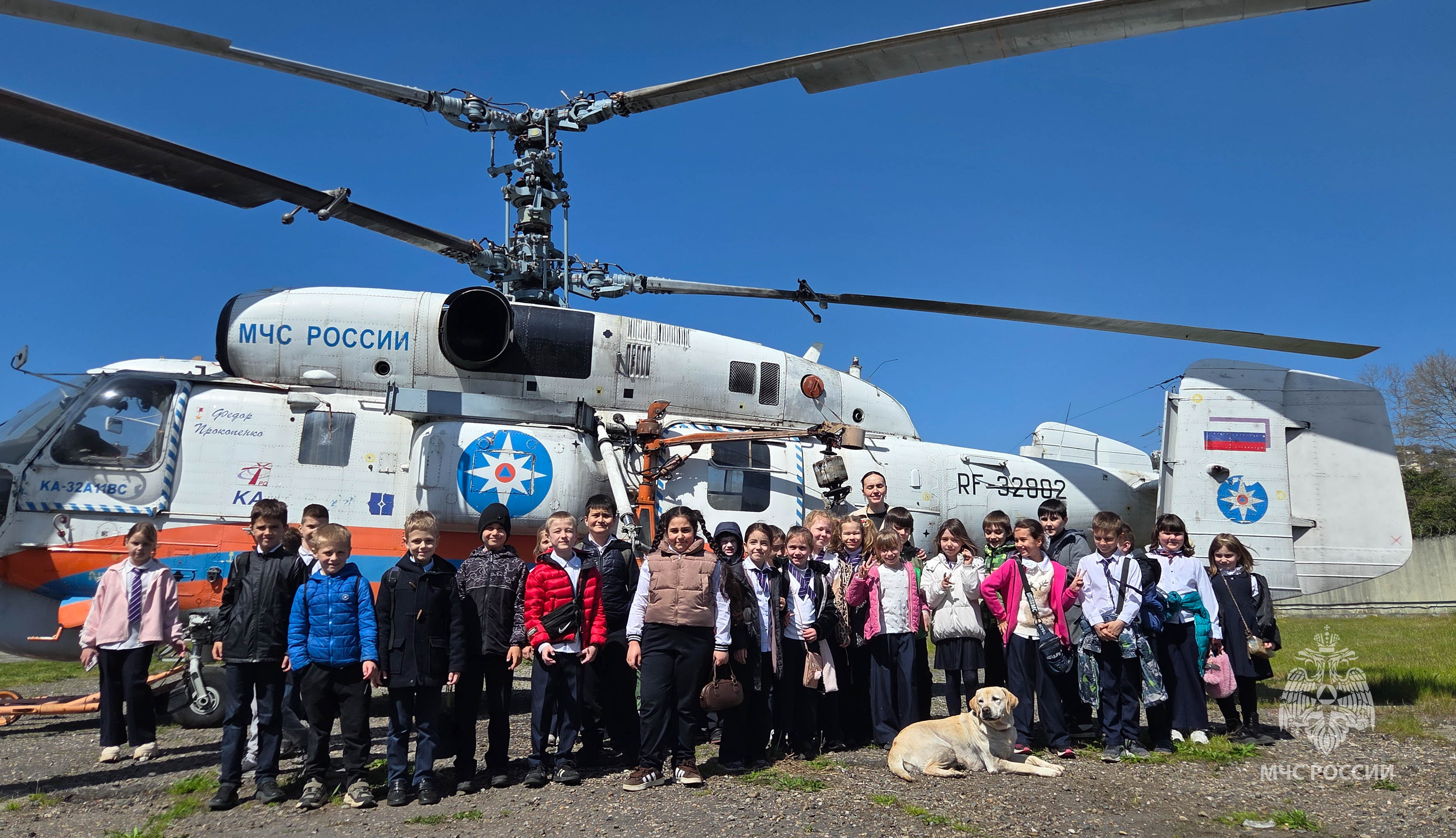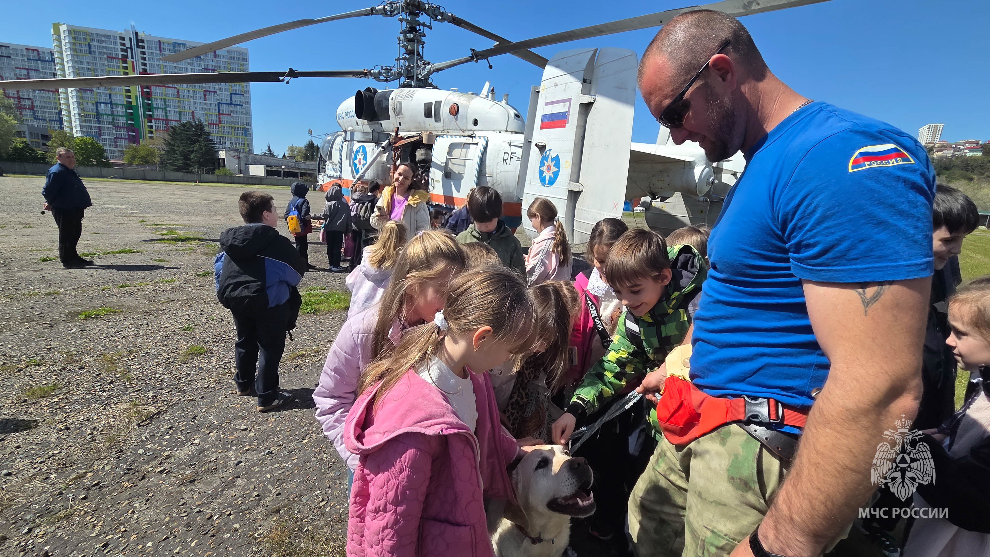 Также под присмотром специалистов Южного авиационно-спасательного центра МЧС России дети зашли в салон вертолета Ка-32 и увидели винтокрылую машину изнутри.