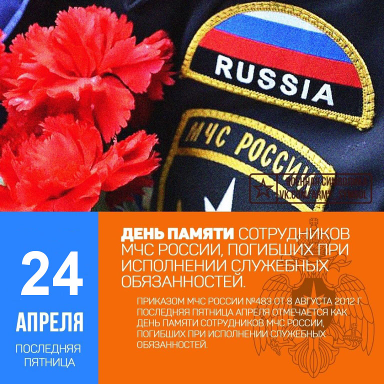24 апреля — День памяти сотрудников МЧС России, погибших при исполнении служебных обязанностей