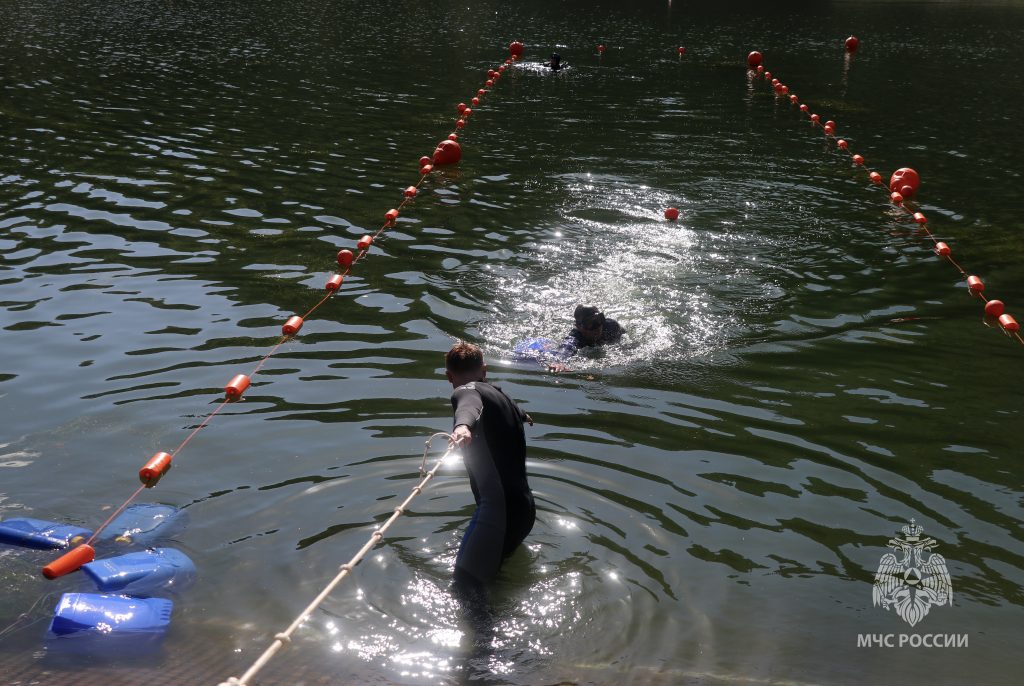 Дистанция «Поисково-спасательные работы на акватории» проводится на территории горного озера «Розы Хутор» на высоте 1000 метров над уровнем моря. При выполнении подводных работ команды работают на глубине до 5 метров.