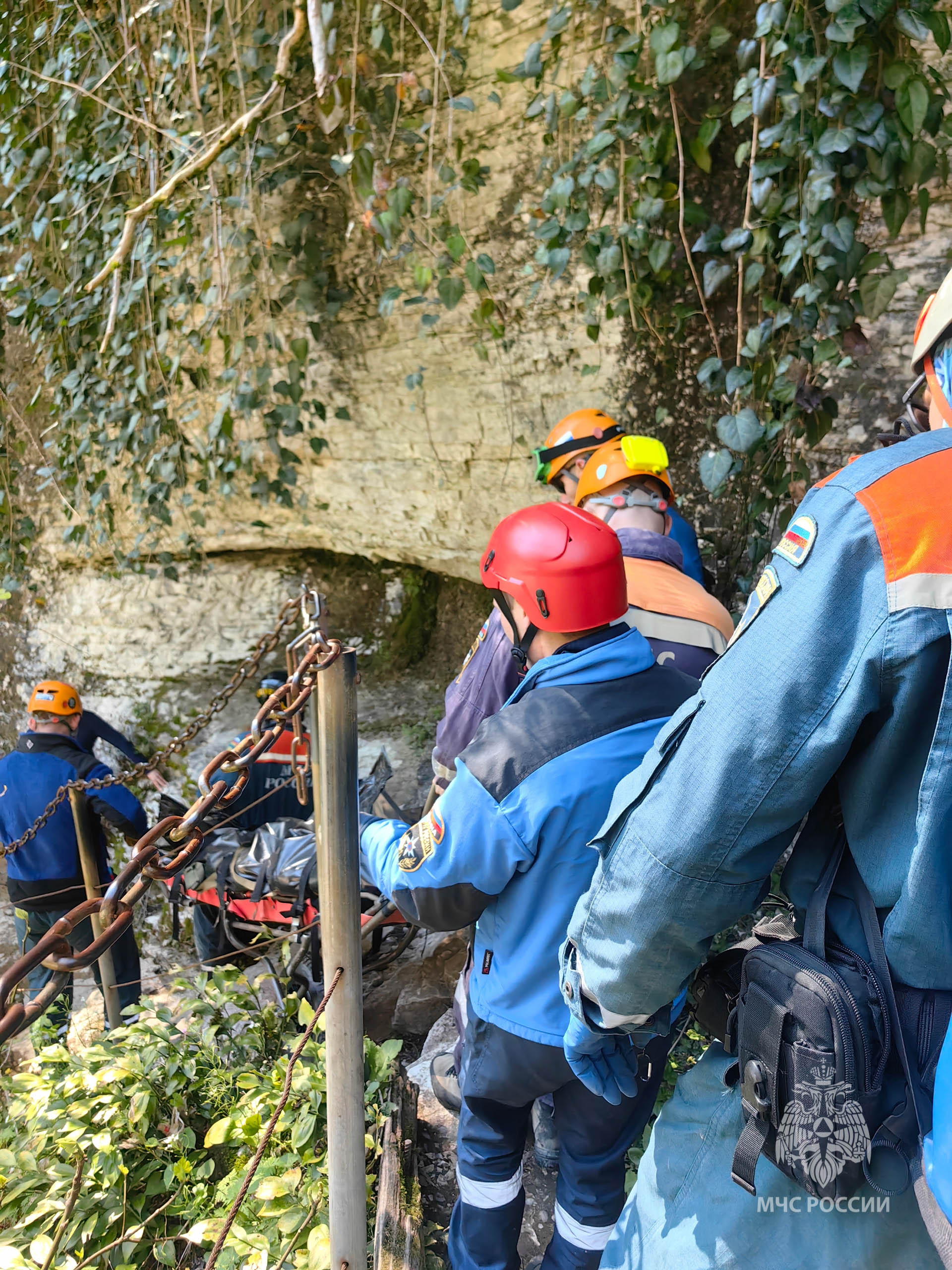 Спасатели обнаружили мужчину на тропе, недалеко от пещеры. На носилках погибшего транспортировали из горнолесной местности и передали сотрудникам следственных органов.